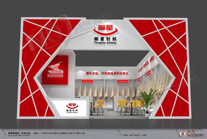 契合桐星針織的品牌形象和產(chǎn)品特性,采用框型結(jié)構(gòu),再搭配燈具燈光的效果,襯托出展位簡(jiǎn)約、便捷的氛圍,突出一種精致、簡(jiǎn)約的時(shí)尚品味。