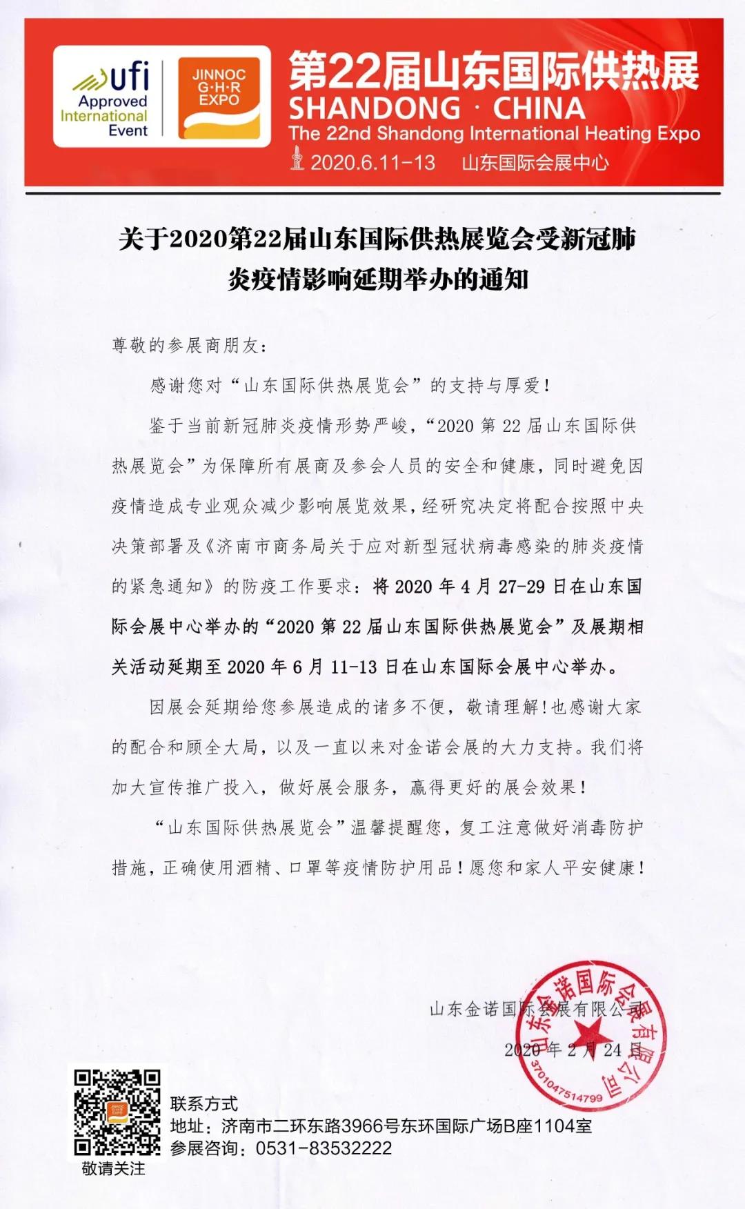 根據(jù)供熱展設計搭建公司領藝展覽了解到,受新冠病毒感染的肺炎疫情影響,第22屆山東國際供熱展延期至6月11到13日在濟南盛大召開。如需供熱展設計請聯(lián)系領藝展覽,希望我們能在供熱展搭建上為您添磚加瓦,祝各位朋友收獲多多,滿載而歸!