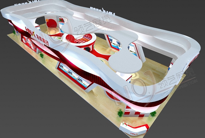 契合海航集團(tuán)的品牌形象和產(chǎn)品特性,采用立體結(jié)構(gòu),圓角矩形結(jié)構(gòu),再搭配燈具燈光的效果,襯托出展位商務(wù)、前衛(wèi)的氛圍,突出一種個(gè)性、尊貴的時(shí)尚品味。